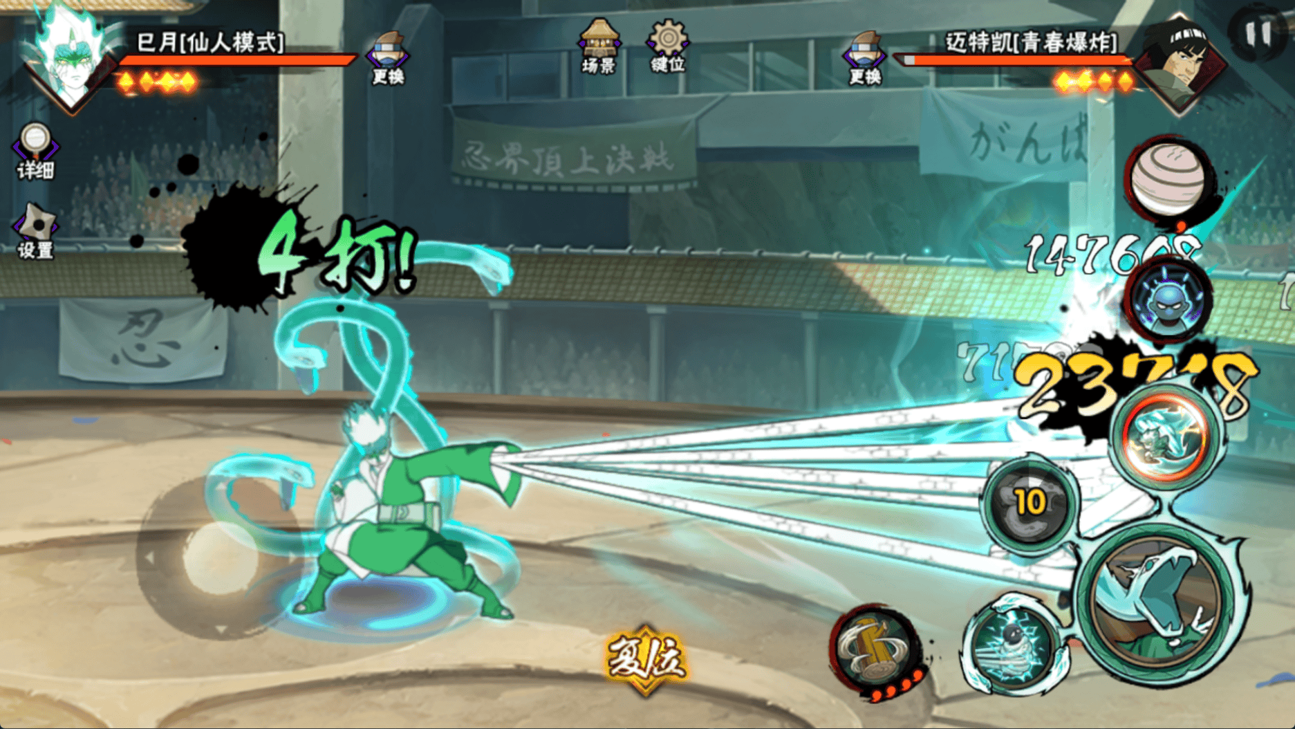 你正常普攻还是原来的普攻按钮,想要触发特殊姿态就用子技能,不然这个忍者在残血之后很容易出现特殊姿态原地罚站的情况。